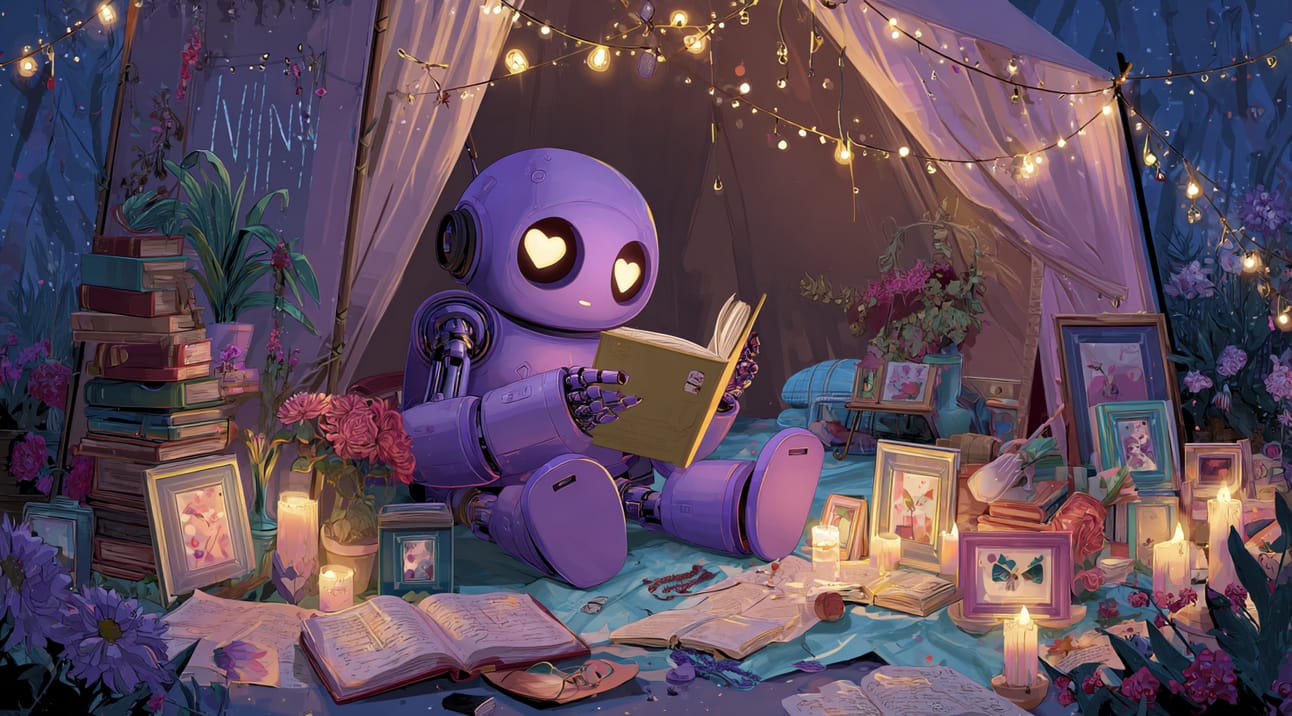 This is the ongoing story of NINAβa lavender-hued domestic robot designed for care and protection in a world that often fails those who need it most.